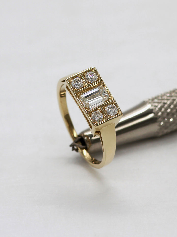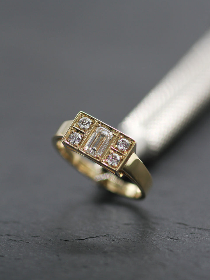 Emerald cut diamond, weight 0.3 CT, 4 Round-cut diamonds