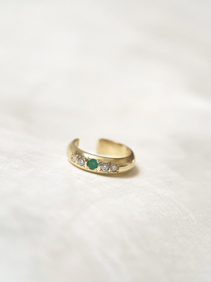 - 4 Round cut diamonds and gems in the center: Blue Sapphire or Green Emerald