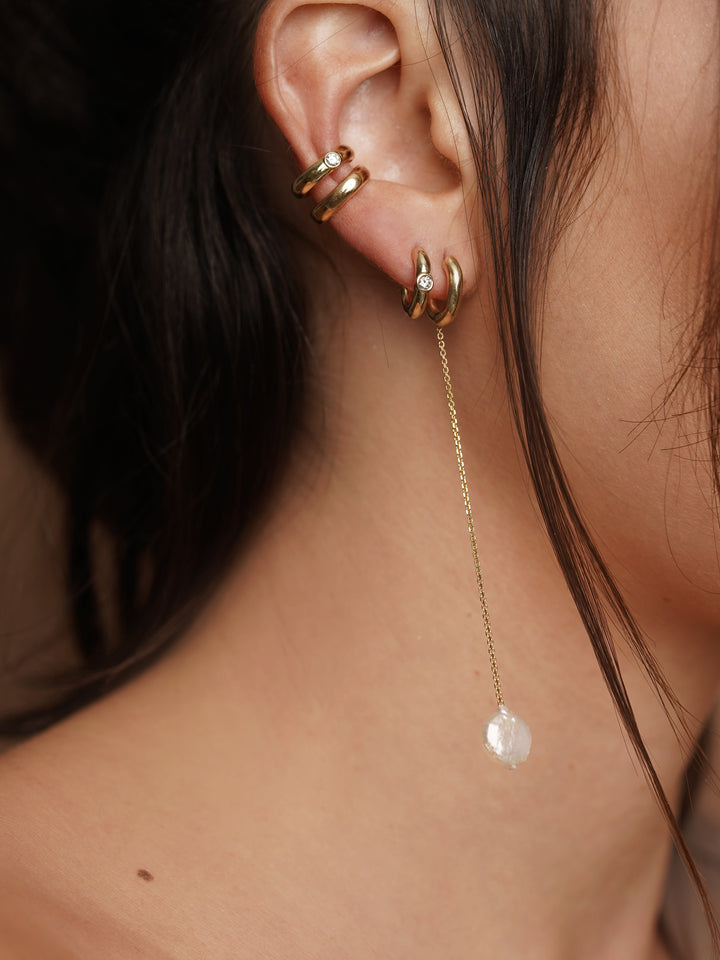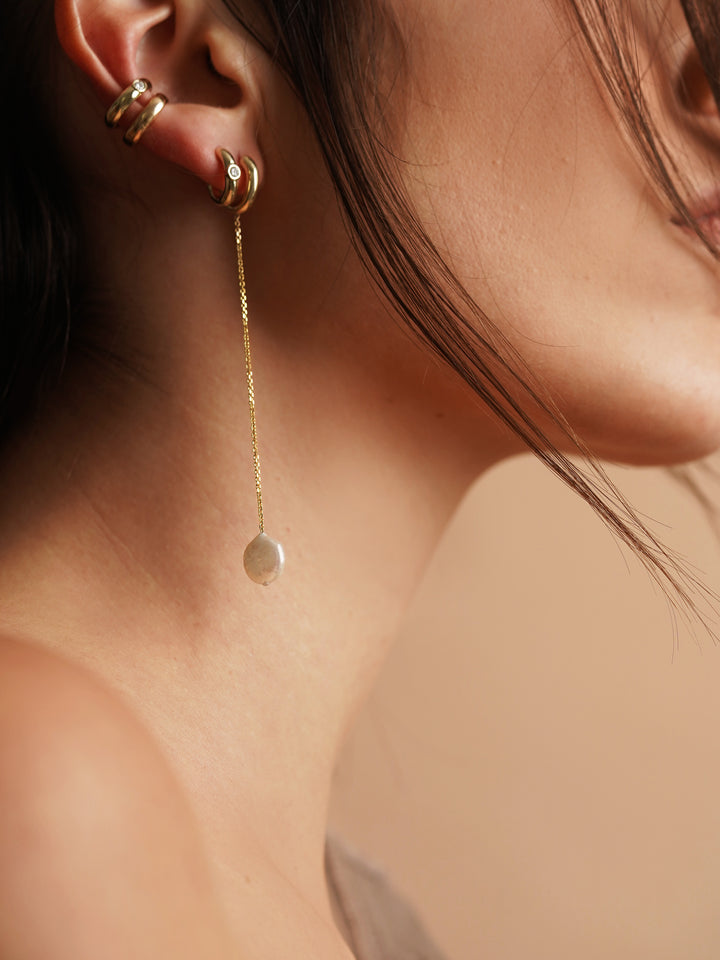 Dancing Pearl Oval Hoop Earring