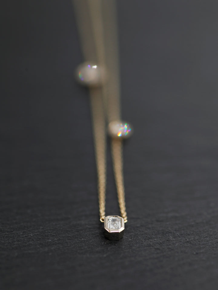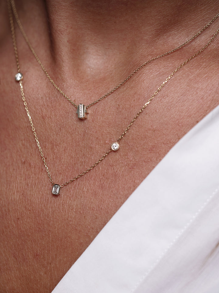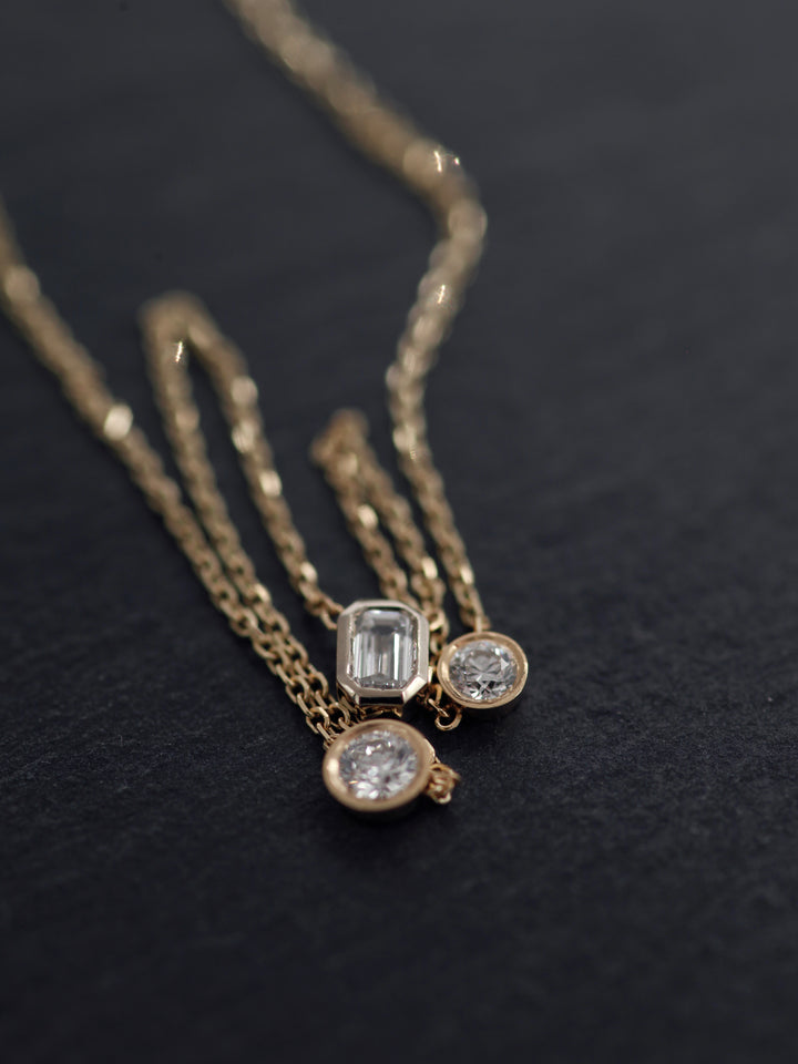 2 Round-cut diamonds + 1 Emerald-cut diamond, Total diamonds weight 0.35 CT
