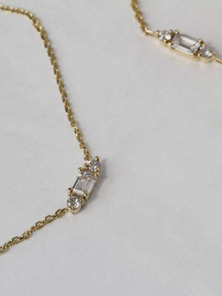 - Emerald cut & 2 Round cut Diamonds